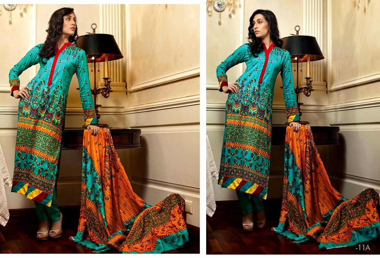All these dresses are in cotton and linen fabrics and are stitched in such a fabulous technique that you will really love it. These dresses have long shirts with designer embroidered work on front and back, Beautiful lace work and glowing color. I hope you will like these stunning Firdous cambric dresses 2013-2014.